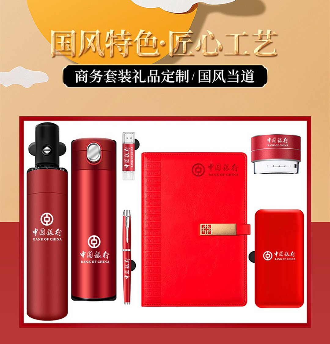 笔记本+保温杯+雨伞+充电宝+U盘+音箱